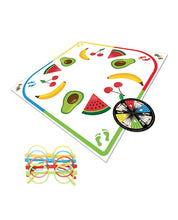 Players stand on their chosen coloured footprints wearing their matching coloured glasses. Players take it in turns to spin. That player then has to do what the arrow lands on, for instance, hand on red bum, left foot on banana, etc. If a player lands on Fondle they have to do a forfeit. Fondle can be played with either 2, 3 or 4 people. Players are instructed to use the spinner for the correct number of players. The game can be played with clothes, underwear or for the daring naked. Land on fondle? Take a shot; Strip! Take off an item of clothing; Kiss the person to your left; Cluck like a chicken; Moo like a cow; Hee-haw like a donkey; Oink like a pig; Do a little dance; You might decide to just do shots, or just play strip fondle. Its up to you. Included: 4 pairs of glasses, 1 play mat, double sided spinner