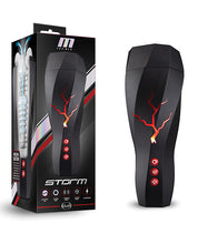 The M for Men Storm is loaded with fun! This ribbed masturbator cup has an array of pleasurable textures inside that massage and tease. Cycle through 7 powerful vibration functions and a one-touch suction effect that tightens and releases around you for optimal pleasure. The feeling is like getting your rod thoroughly milked. The internal cup is detachable for easy cleaning and the cap can be put on for protection and discreet storage. Plug in the included headphones into the headphone jack and listen to the realistic moans! M for Men masturbators are soft, flexible, and filled with sensational textures. Made of premium TPE, Storm is body-safe, fragrance-free, and phthalate-free. Built to Last.As with all products and/or materials at Blush it has been 3rd party lab tested to meet or exceed REACH and Prop65 safety compliance directives. It's your body. Be mindful of what you put in it.