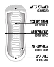 Just Add Water. Shower Stroker. A few drops will do! Reusable strokers get slippery without lube. Extra Stretchy to fit most. Reusable and substantial stroker. Soft, tight and lifelike masturbator. Use sleeve independently or in cup. Waterproof hang cord for shower. Easy to clean.