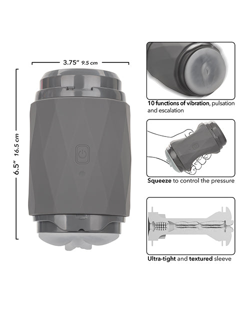 Unlock a world of tantalizing sensations with the Milk Master Vibro Squeeze Pussy, your new go-to for thrilling solo sessions. This self-contained, rechargeable dual-ended masturbator combines powerful vibrating action with a unique squeeze-to-control feature, allowing you to dial up the intensity and pressure to exactly where you need it. Whether youre craving a gentle caress or a tight squeeze, this toy adjusts to your every whim, offering personalized pleasure at your fingertips.Dive into a diverse playground of sensations with 10 distinct functions of vibration, pulsation, and escalation. The stroker elevates your experience with an ultra-tight, textured sleeve thats designed for intense stimulation. Featuring a dual-ended design, this stroker invites you to explore both front and back door action, leaving no desire unfulfilled. The EZ grip ensures a firm hold, enhancing your control and adding an extra layer of intensity to your pleasure. It also comes with removable caps at both ends, providing safe and clean storage when not in use.The Milk Master Vibro Squeeze Pussy is 100% waterproof with an IPX7 rating, perfect for adventurous play in any setting. Equipped with a state-of-the-art memory chip, it remembers your last used setting, and with the security travel lock feature, your indulgences stay discreet. Ready to go after just a 1.5-hour charge, this stroker delivers up to 50 minutes of play on high speed and 60 minutes on low, ensuring that your most urgent cravings are always satisfied.