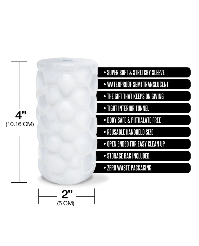 Pleasure Package... the gift that keeps on giving! Zero waste packaging because saving the planet is a real turn on. Every part of the packaging is reusable or recyclable and includes an eco-friendly sex toy storage bag. "Use with Caution: Package contains choking hazard" tight textured stroker.