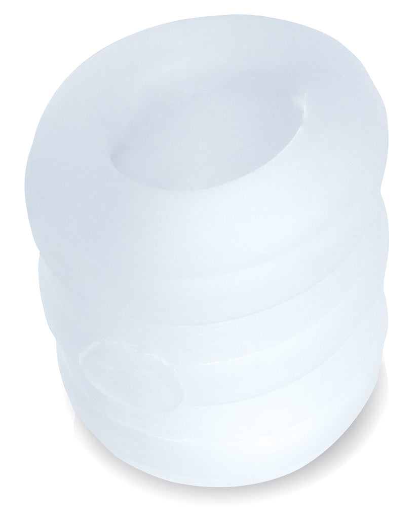 Jackits throttle stroker is a super soft and stretchy masturbator that can also be worn at base of penis during intercourse for a soft and squishy buffer to prevent "bottoming out." Waterproof and reusable. Easy to clean. Made of body-safe SEBS. Clear.