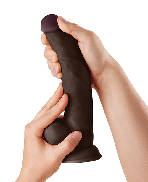 Shaft Model C Flexskin Liquid Silicone 9.5' Curved Dong w/Balls - Mahogany