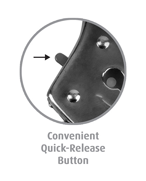 The use of restraint has always been a sexual stimulant, and with these Official Cuffs, fantasy becomes reality! These cuffs are perfect for beginners and strong enough for any level of user. The locking mechanism has a quick-release button in case you lose the key, and their sturdy design ensures they're made to play hard.