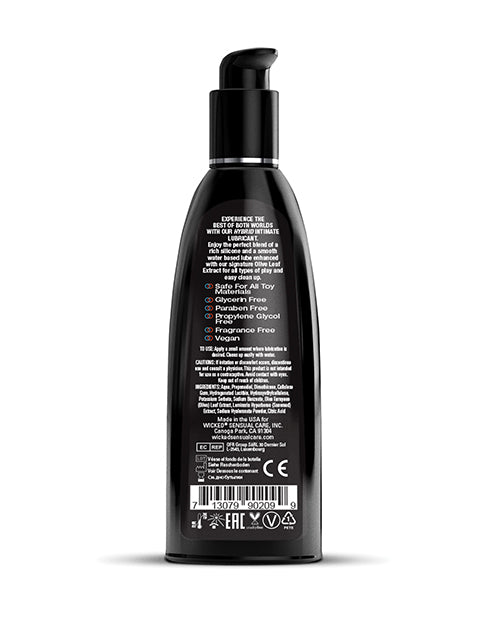 It?s the best of both worlds with Wicked Hybrid. This super silky water-based personal lubricant is easy to clean, as well as toy and latex friendly, and blended in harmony with a rich bodied silicone. This fusion hybrid lube also includes seaweed extract for added glide and moisture – the perfect choice for all types of intimate play.