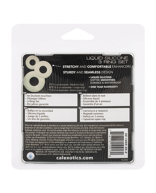Alpha Liquid Silicone Glow in the Dark Cock Ring - Set of 3