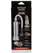 Give your manhood everything it needs to stay hard, satisfied, and at its maximum size, all in one convenient package! The Sta-Hard Erector set includes a pump to help you reach your full erection potential, an enhancer ring to keep your erection going strong, an intensely pleasurable masturbator, and a vibrating bullet thatll rock your world.This complete assortment of handy tools will help you enhance, maintain, and sustain your erection, all while maximizing your pleasure for a more satisfying love life. The pump uses airtight suction to increase pressure and blood flow to your penis. With regular use, the pump will help your penis grow in both length and girth while delivering your firmest erection yet.The All-Star enhancer ring can be used on its own or with your pump to increase your stamina, make your sensitivity soar, and maintain a rock-hard erection thatll drive your partner wild. Slip it on before play or after a pumping session to maintain the fruits of your pumping labor.The soft, stretchy masturbator puts your penis in the lap of sexy luxury as you play. A ribbed inner chamber adds extra texture and amazing stimulation to deliver explosive orgasms. Use the masturbator on its own, after a pumping session, or with your new All-Star ring for an even more intense experience.Finally, a powerful vibrating bullet rounds out your new set with the kinds of vibrations that will send you over the edge in no time. Two AA batteries are all you need to power up. Use it on its own, strapped to your pump, or to enhance the pleasure of your ring and masturbator.Treat your penis to an amazing array erection - enhancing new toys and reach new heights of pleasure with thiaset!