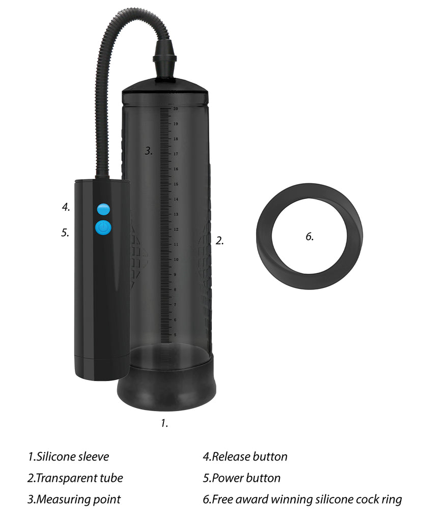 Shots Pumped Rechargeable Extreme Power Pump w/Free Silicone Cock Ring - Black
