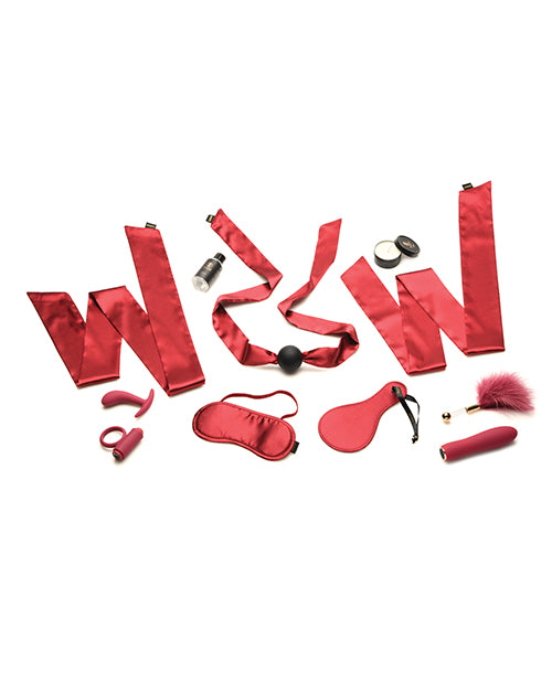 Everything you need to surprise your partner with the ultimate sensual experience! This bedroom Bliss Bondage massage Set includes 1 Satin Blindfold, 1 Satin Paddle, 2 Satin Restraints, 1 Silicone Ball Gag, 1 Silicone Butt Plug, 1 Vibrating Silicone C-Ring, 1 Vibrating Silicone Bullet, 1 Feather Tickler, 1 Massage Candle, 1 1.7oz bottle of massage oil. Enjoy 3 speeds and 7 patterns of vibration from the vibrating C-ring and the bullet vibrator! They are both covered in silky smooth, premium silicone. The bullet vibe is rated IPX7 waterproof and can be submerged underwater for up to 30 minutes and the C-ring is rated IPX6 waterproof and can be taken in the shower, but not submerged underwater. The ballgag is also premium silicone and all silicone items are phthalate-free and body-safe to use with water-based or oil-based lubricants. Enjoy the satin against your skin as you use the blindfold, restraints and gag. Arouse your partner with sensual play from the feather tickler, the wax candle or the massage oil! Satin can be stained by oil, so try not to get oil on the satin. To clean it or remove an oil stain, use baking soda and sprinkle it over the satin, then place a cloth or towel over the powder and put a book to weigh it down. Leave it overnight. You can also use lemon juice or white vinegar mixed with water and dab the stain. To wash the silicone toys simply use mild soap and warm water, then rinse it off and spray it with a toy cleaner before patting it dry. Recharge the vibrators using the USB cable provided.
