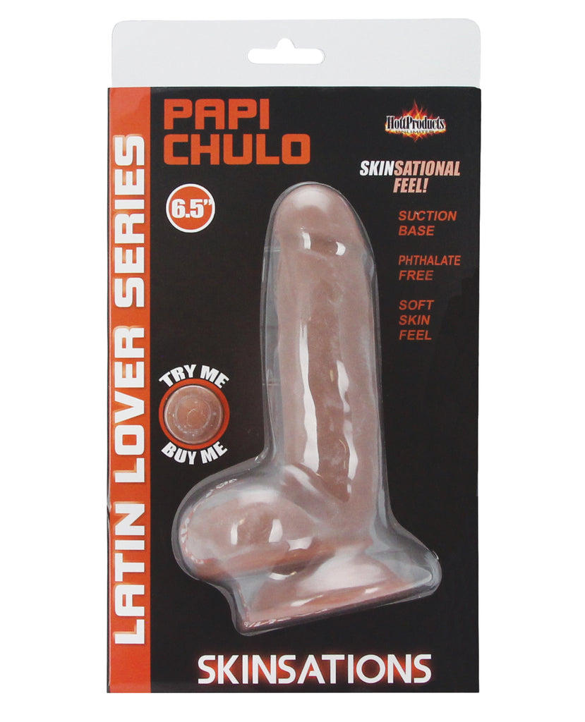 The latin lover series from Hott products will satisfy your every need. These realistic skin dildos absolutely look and feel like the real thing! Comes complete with super suction cup base which will stick to nearly any smooth, flat surface for a passionate pounding good time! You can also enjoy SKINSATIONS in the shower, hot tub, or spa and turn bath time into play time! Papi Chulo is 8 inches long by 1.5 inches wide.