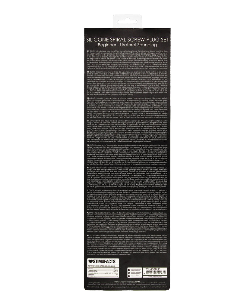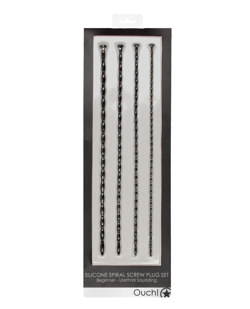 Shots Ouch Beginner's Urethral Sounding Silicone Spiral Screw Plug Set - Black