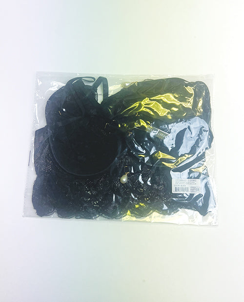 Perla Lace 3 pc Set w/Pearl Details - Black S/M
