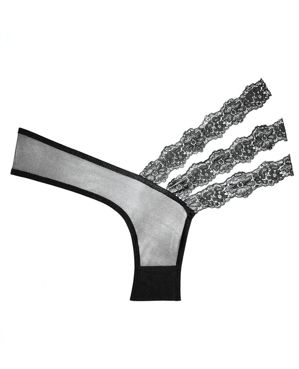 Rene Rofe Crotchless Lace V-Thong Black M/L
