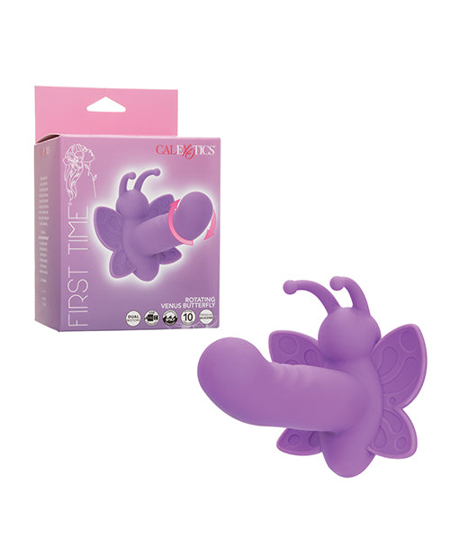 Prepare to fall in love with the First Time Rotating Venus Butterfly, a full-contact, powerful butterfly stimulator designed to flutter straight into your heart and other key areas. With its rotating pleasure tip, this enchanting vibe offers a unique sensation that delicately swirls and twirls around your most sensitive zones.This magical butterfly comes equipped with 10 functions of vibration, pulsation, and escalation, allowing you to customize your pleasure journey with precision. Each setting is designed to enhance your experience, ensuring that every use is as fresh and exciting as the first. The body-safe silicone makes it a joy to handle, while its 100% waterproof design with an IPX7 rating, invites you to take your play beyond the bedroom and into the bath or shower.The First Time Rotating Venus Butterfly is as convenient as it is thrilling. USB rechargeable with a complete charge in just one hour, it is ready to go whenever you are. The stimulator runs for 35 minutes on low speed or 30 minutes on high, providing ample time to reach new heights of pleasure. A state-of-the-art memory chip and security travel lock feature ensure that your intimate adventures are both seamless and secure. Get ready to spread your wings with this butterfly and let your pleasure take flight. One Year Warranty.