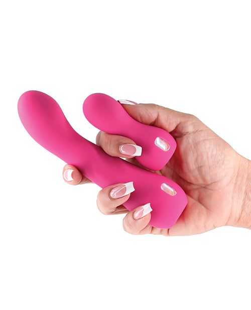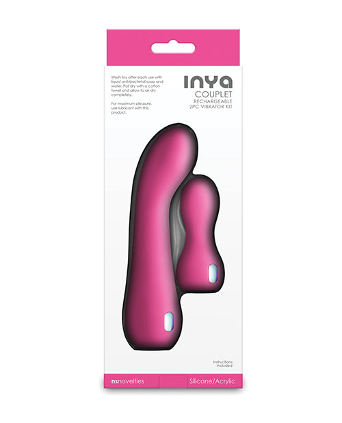 Couplet by INYA is a match made in heaven. Including a powerful 3-inch vibrating bullet and a 6-inch curved vibrator for unmatched G-Spot stimulation. Couplet vibes are made from body-safe silicone and are accented with iridescent gems. Rechargeable. Water Resistant. Suitable with all lubricants. 6 speeds / 14 functions.