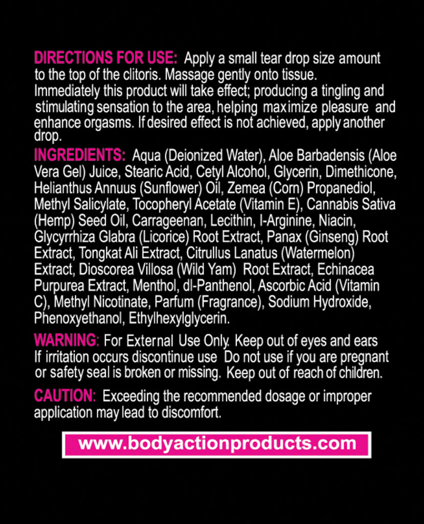 HemPleasure for women is designed to help increase female stimulation providing maximum sensation to the clitoris for the ultimate pleasure. Amplifies female pleasure immediately on contact Helps Stimulate the Clitoris Produces a Tingling Sensation Maximum Strength Arousal Cream Helps Enhance Sensual Activity Infused with HEMP Seed Oil