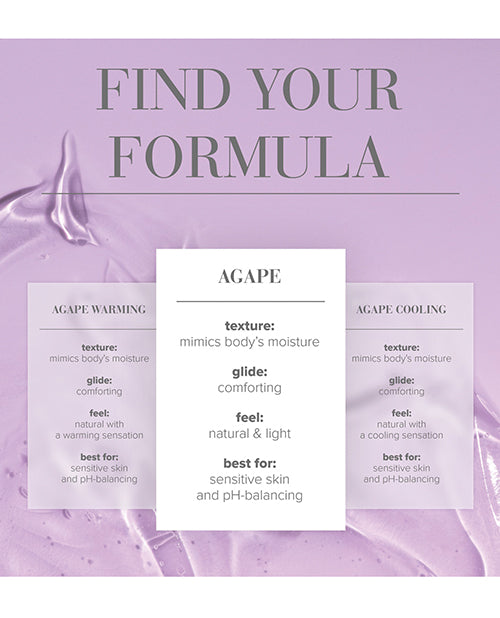 JO Agape is our carefully pH balanced, water-based lubricant that mimics the body’s natural moisture and has a light, natural feel.