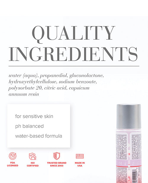 JO Agape Warming is our carefully pH balanced, water-based lubricant that mimics the body’s natural moisture and has a light, natural feel.
