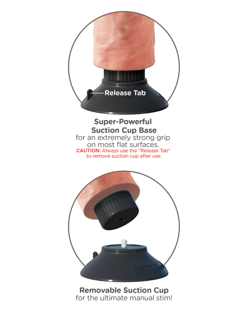 Do you want your first vibrator to look and feel just like the rock-hard stud you've always fantasized about? Stop dreaming and get down with the King! Every vein, every shaft, and every head is handcrafted with exquisite detail to give you the most realistic experience ever imagined. Featuring a posable spine, simply bend the cock to your favorite shape to hit just the right spot every time. Amp up the pleasure with a simple twist of the multi-speed dial for ultra-powerful vibrations that will blow you away. You can even take this waterproof vibe into the shower, hot tub or spa and turn bath time into playtime! The super-strong suction cup base sticks to nearly any smooth, flat surface and offers harness compatibility for strap-on fun. Stick it to the floor, wall, tile, or bedpost and it will stay securely in place. Always use the release tab to remove the suction cup after use. The suction cup can be removed from the vibe by simply unscrewing it from the base for easier handling during manual play.