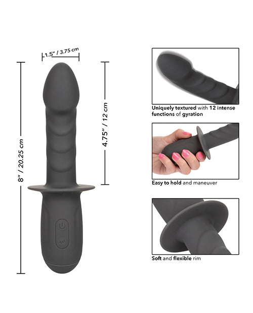 Experience the ultimate pleasure with Ramrod Gyrating. Designed with a gyrating action and a uniquely textured shaft, this toy takes stimulation to the next level, providing intense sensations that will leave you breathless. Featuring 12 intense functions of vibration, pulsation, and escalation, you have a variety of options to explore and find the perfect mode for your pleasure. Crafted from body-safe silicone, this probe ensures a smooth and enjoyable experience. It is also waterproof and submersible up to IPX7 standards, allowing you to indulge in wet and wild adventures. With a state-of-the-art memory chip, the probe remembers your last used function, making it easy to resume your pleasure journey. The security travel lock feature adds convenience and peace of mind, ensuring the toy won't accidentally activate during transportation. No need to worry about batteries as the probe is USB rechargeable. The charging cord is included, and in just 1.5 hours, you'll have a complete charge, offering 60 minutes of high-speed excitement and 100 minutes of low-speed enjoyment. Unleash the power of this probe and discover new realms of pleasure. Get ready for an unforgettable experience that will satisfy your deepest desires.