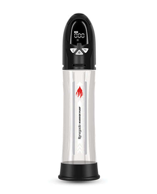 The Renegade Warrior Pump a revolutionary, waterproof pump that can be used in the tub, shower, pool, and more. Fill up the chamber with water for a wet and wild pumping session. Warrior features an LCD screen to gauge each session, an 8-inch long by 2.75-inch acrylic cylinder, a TPE donut sleeve, and an ABS handle for effortless use. 4 intensity settings / 4 patterns. Rechargeable. Suitable with all lubricants.