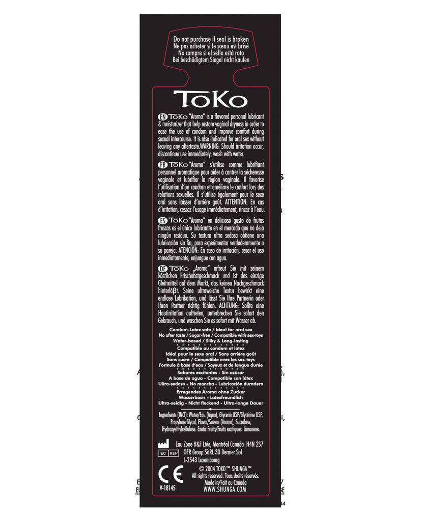 TOKO Aroma Lubricants in great flavours with absolutely no after taste. TOKO is the next generation of personal lubricant, exclusively formulated to emulate natural lubrication and facilitate penetration. This ultra-silky, long-lasting water-based lubricant enhances bodily sensations.Pour a little amount in your hand and apply on intimate area or use over a latex condom to facilitate penetration.