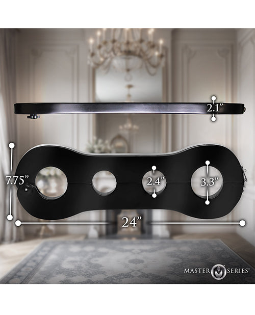 Create exceptional BDSM and kink scenes with Trapped Wrist & Ankle Stocks, the epitome of classic and stylish bondage gear. Crafted from gleaming black wood and enhanced with silver metal highlights, this stockade promises to restrain your partners wrists and ankles effectively. Its superior construction using robust wood and nickel-free metal makes it both portable and durable for all your intense scenes. The convenient hinge mechanism ensures easy application, while the lockable clasp allows you to add a padlock for an extra layer of security.