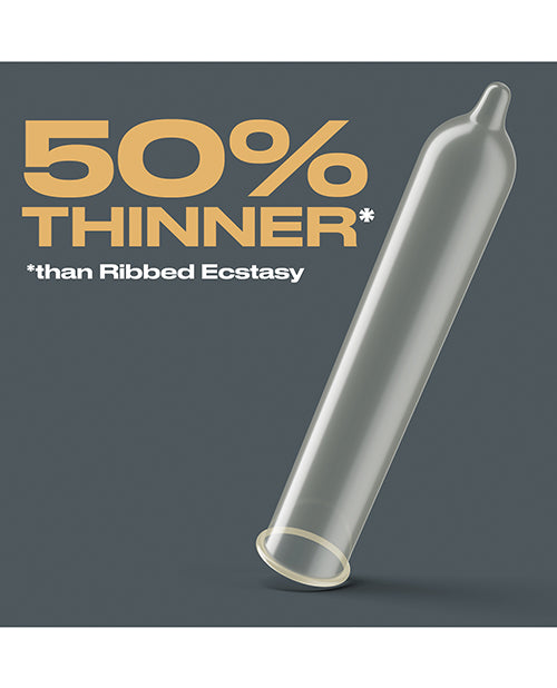 For the epitome of comfort and sensitivity, your search ends here. Trojan™ BareSkin™ condoms are renowned for their ultra-thin design, offering a more natural and heightened experience. These lubricated condoms take thinness to the next level, being 50% thinner than our Ultra Ribbed Ecstasy™ counterparts. It's not just a reduction in thickness; it's a doubling of pleasure.