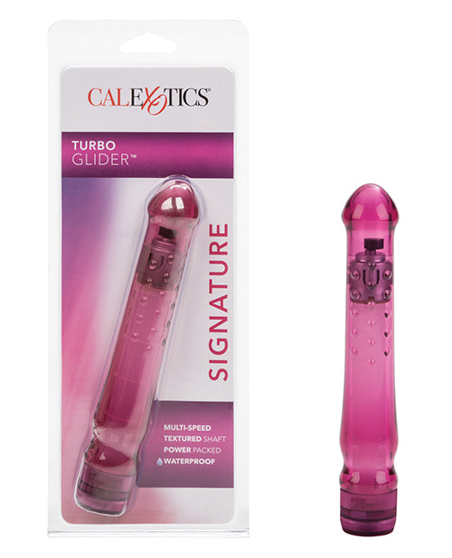 Get fruity in the bedroom with the Turbo Glider™ - Raspberry Crush. It offers a number of delightful speeds to get your juices flowing. With its powerful vibrating motor, you can be sure that you’ll be going crazy when you use this sexy little adult toy. The vibratoris textured in numerous places for added pleasure. The studded shaft adds texture when inserted, and the ridged head furthers the delight from this sensuous sex toy. The multi-speeds are operated by the traditional dial at the base of the shaft, so you can start off slow and work your way up to a mind blowing orgasm. We recommend using the Turbo Glider™ - Raspberry Crush with a water based lube for instant fruity fun.