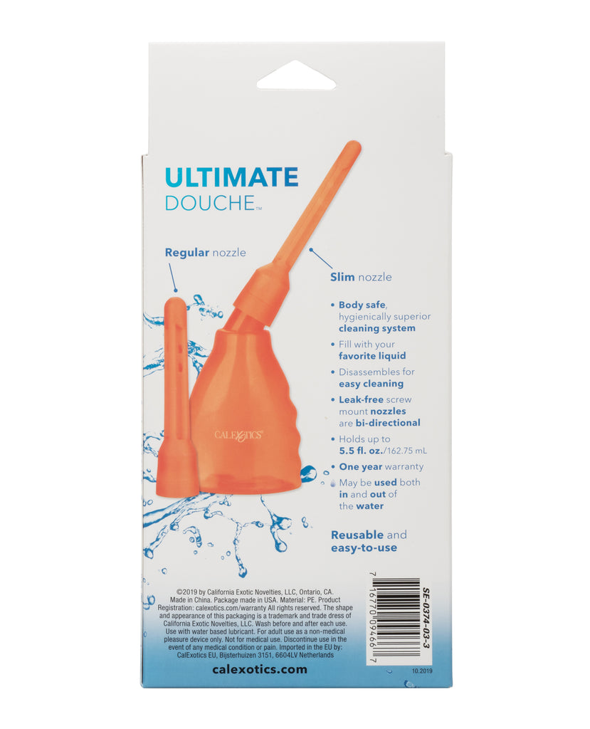 The Ultimate Douche is a powerful reusable douche system made every pleasure seeker. The powerful system includes a transparent bottle, slip applicator tip and multi-directional probe. Never again worry about little accidents spoiling the mood, instead, allow the easy-to-use transparent bottle to give you a superior cleaning experience. To enjoy everything the exhilarating world of anal play has to offer, you'll want to prepare to ensure total cleanliness, safety and satisfaction; The sleek, slim tip lets you comfortable cleanse, while the multi-directional tip delivers teasing stimulation for those seeking a deeper clean. Effortlessly control water flow and stimulation with this transparent squeeze bottle. This effortless bottle is easy-to-use, easy-to-clean and can be disinfected. Prior to and after each use, wash probe and bottle internally and externally with warm water and soap, then disinfect with the Universal Toy Cleaner.